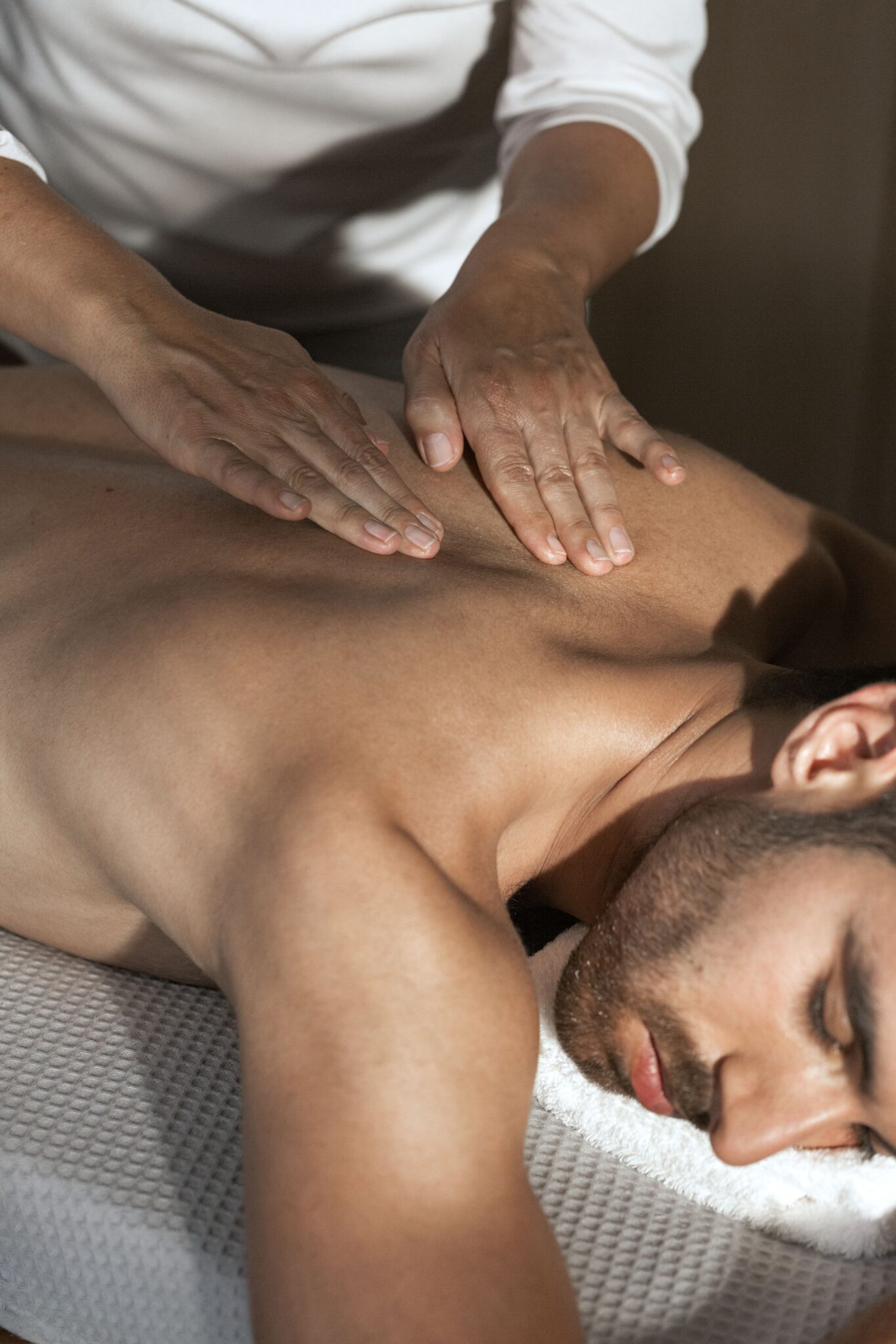 Massage du dos ; nuque ; décolleté ; tête ; crâne ; visage